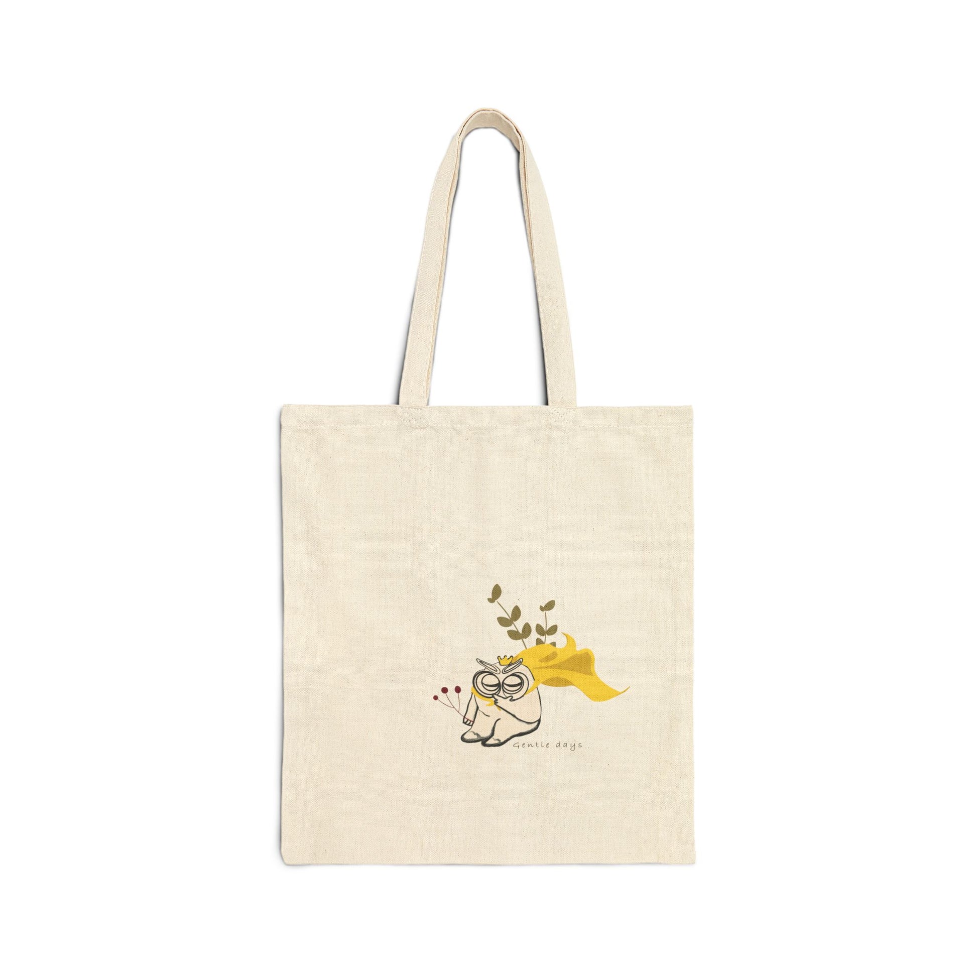 Light, tactile, and quietly playful — this heavy cotton canvas tote carries the little moments. The natural heavyweight fabric holds its shape and resists wear, while flat corners and reinforced self-fabric handles give it a clean, structured silhouette. A small illustrated character with a fluttering yellow scarf and drifting leaves adds a gentle, whimsical touch that reads like a secret smile as you shoulder the bag. Use it for neighborhood errands, sketchbook runs, or tucked under your arm on a slow morning. The sewn-in label and solid construction mean this tote settles into your routine and keeps looking honest for seasons.